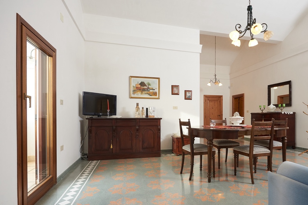 Il vero cuore di questo appartamento è la terrazza attrezzata, uno spazio ampio e riservato da vivere durante tutta la giornata. Qui puoi fare colazione al sole, rilassarti nelle ore più tranquille o organizzare cene all’aperto nelle serate estive, godendo di un’atmosfera intima e conviviale.